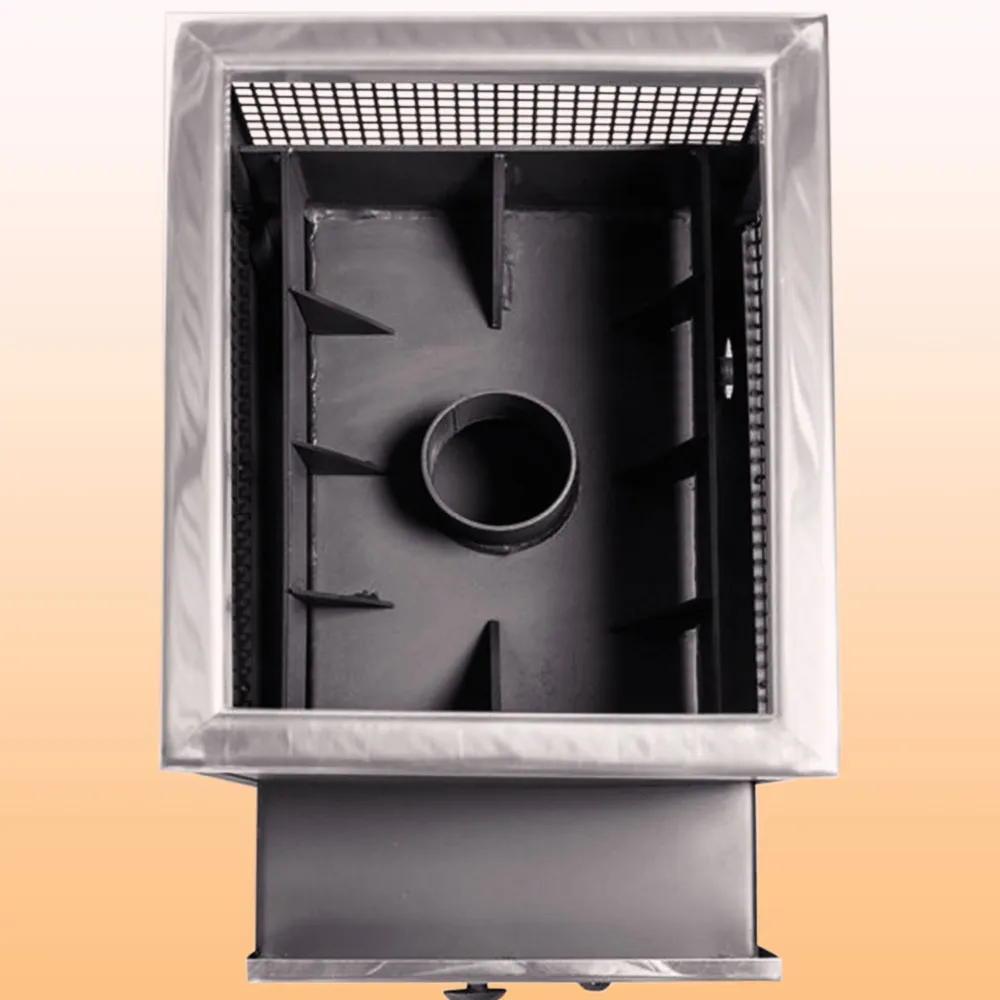 Толстые стенки топки обеспечивают долговечность банной печи.